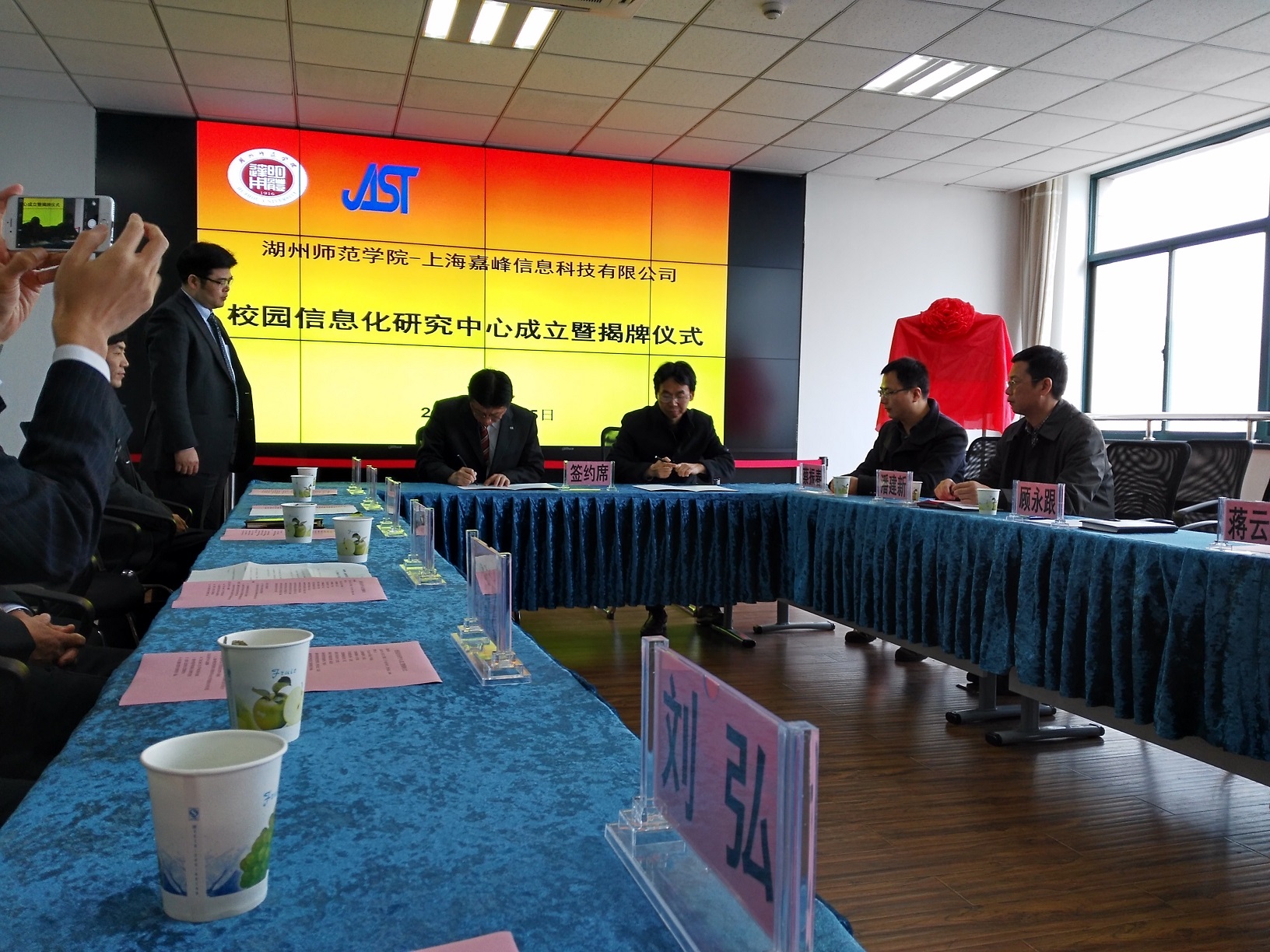 11月(yuè)25日(rì),上(shàng)海(hǎi)嘉峰和(hé)湖(hú)州師(shī)範學院共同設立的(de)校(xiào)園信息化(huà)研究¥中心的(de)簽約儀式在湖(hú)州師(shī)範學院舉行(xíng)。參加儀式的(de)有(yǒu):JAST社長(cháng)平林(lín)武昭、 嘉峰董事(shì$)長(cháng)土(tǔ)屋祐二、董事(shì)松下(xià)誠之、日(rì)華總經理(lǐ)阮立新,湖(hú)州師(shī)範學院副校(>xiào)長(cháng)蔣雲良、教務處處長(cháng)馬志(zhì)和(hé)、信息工(gōng)程學院院長(cháng)顧永跟、書(sh÷ū)記張大(dà)立等 校(xiào)園信息化(huà)研究中心作(zuò)為(wèi)學校(xiào)和(hé)企業(yè)共同λ設立的(de)研究機(jī)構,可(kě)以充分(fēn)發揮湖(hú)州師(shī)範學院在校(xiào)園信息化(h↕uà)方面的(de)科(kē)研優勢,再加上(shàng)上(shàng)海(hǎi)嘉峰深厚的(de)開(kāi)發經驗,可(kě)以有(yǒu)力推進校(xiào)園信息化(huà)的(de)研γ究,使IT技(jì)術(shù)更好(hǎo)地(dì)應用(yòng)到(dào)學校(xiào)管理(lǐ)中,更好(✔hǎo)地(dì)為(wèi)學校(xiào)的(de)教學工(gōng)作(zuò)服務,更好(hǎo)地(dì)為(wèi)學生(shēng)的(de)學習(xí)生(γshēng)活服務。