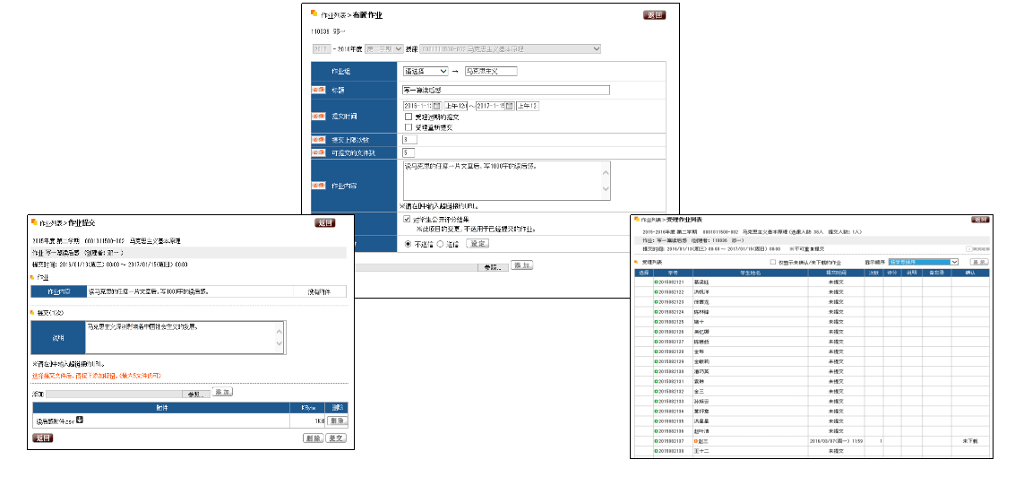 作(zuò)業(yè)處理(lǐ)。布置作(zuò)業(yè)、學生(shēng)提交作(zuò)業(yè)、批閱作(zuò)業(yè),全部實現(xiàn)網上(shàng)管理(l₽ǐ),省時(shí)省力,也(yě)提倡了(le)綠(lǜ)色環保。